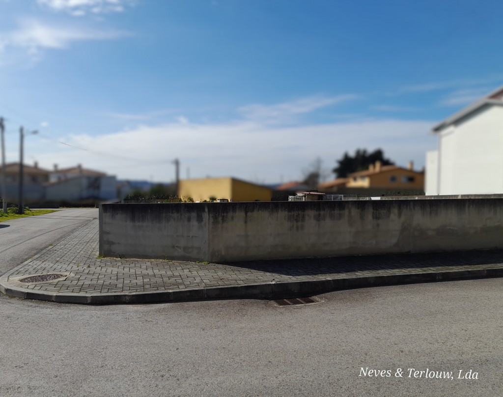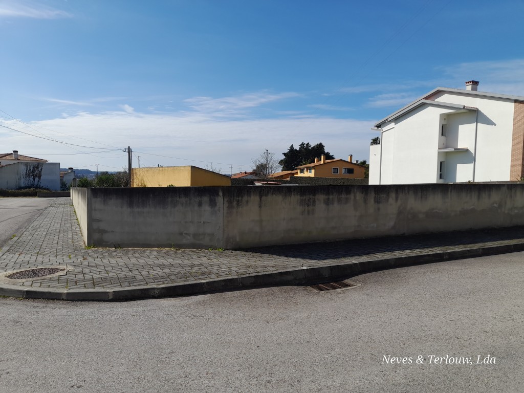 Terreno com cerca de 845 m2 com viabilidade de construção. O terreno é plano, está murado, tem portão e um furo. A eletricidade, água da rede pública e o saneamento estão junto deste.