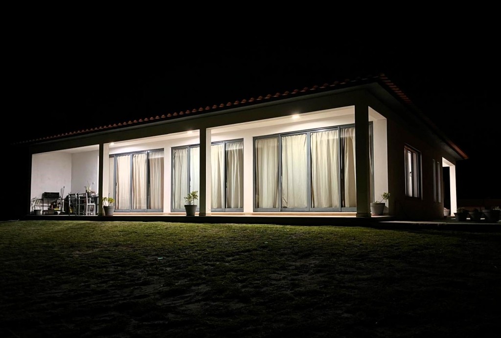 Moradia individual T3 de cave e rés-do-chão, implantada em terreno com cerca de 2030m2. O rés-do-chão é constituído por: hall, sala de estar/jantar com acesso a varanda e jardim, cozinha com ilha e acesso a varanda preparada para churrasqueira, despensa, casa de banho, corredor, 3 suites (quartos com roupeiros e casa de banho privada, dois deles com acesso a varanda). A cave é ampla sendo destinada a garagem e arrumos. O chão dos quartos é em madeira e o das restantes divisões é em cerâmica. A moradia está equipada com alguns eletrodomésticos na cozinha (placa, forno e exaustor), bomba de calor para águas quentes, aquecimento em piso radiante, aspiração central, 8 painéis fotovoltaicos com baterias para produção de eletricidade e portão da garagem automático. A propriedade está murada, e está preparada para portões automáticos. Área bruta de construção cerca de 380 m2 (2 pisos). Classe Energética: D